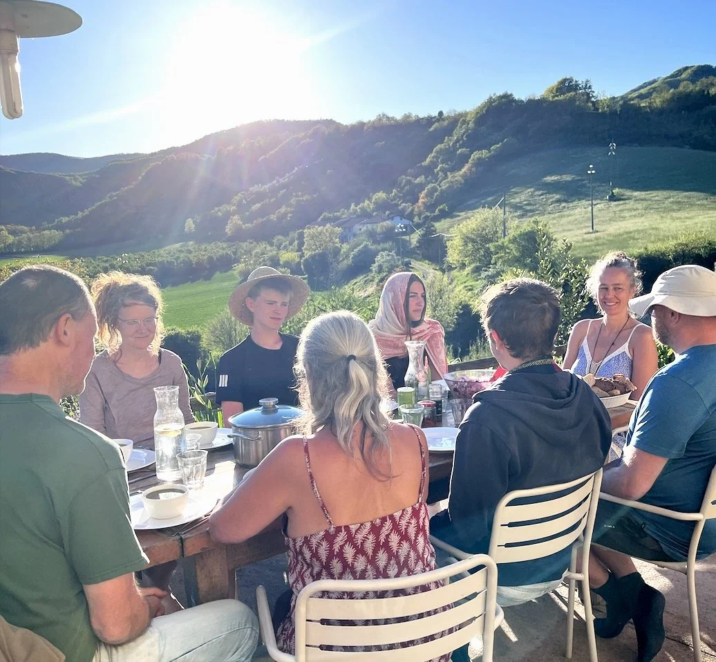Everyone at Amiglia participates in the daily morning practice, which consists of half an hour of conscious movement with music followed by half an hour of silent meditation. This practice is accessible to beginners and stimulating for those who may struggle with consistency when practicing alone. It serves as the nucleus of our small community, connecting us all beyond words and work.
